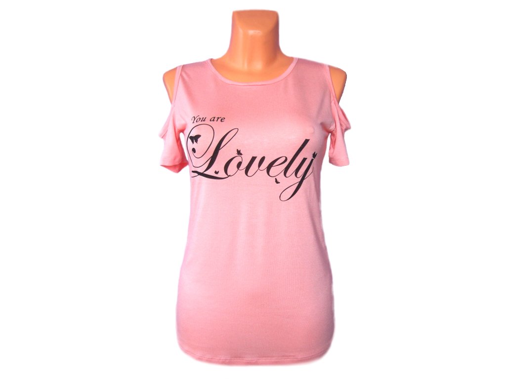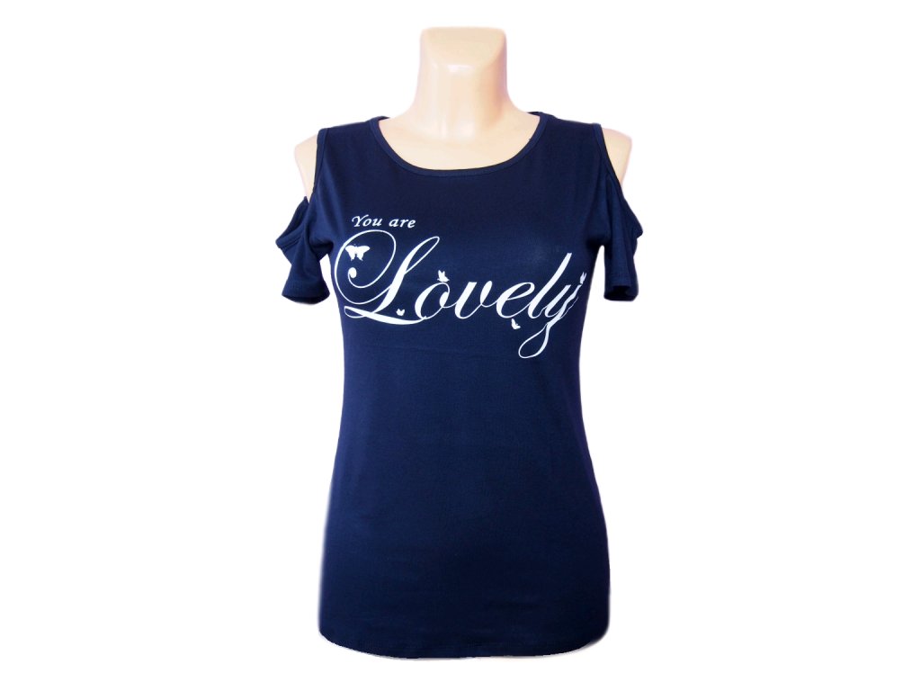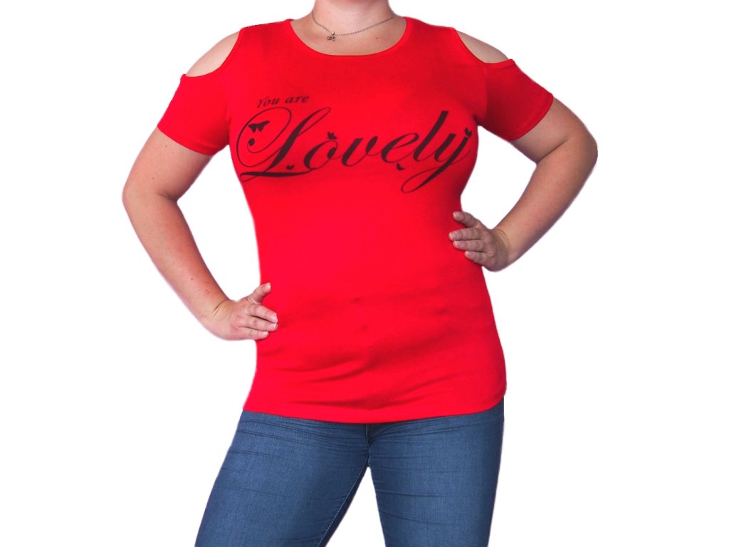 Moderní dámské tričko s děravými rukávy a jednoduchým potiskem.